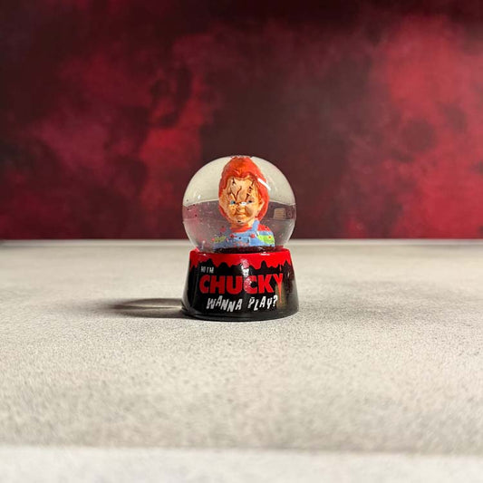 Child’s Play – Chucky “Wanna Play?” Mini Snow Globe | 3” Collectible Horror Decoration